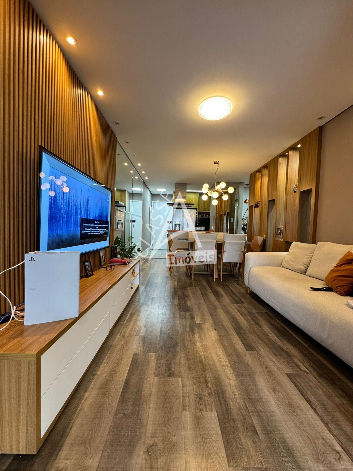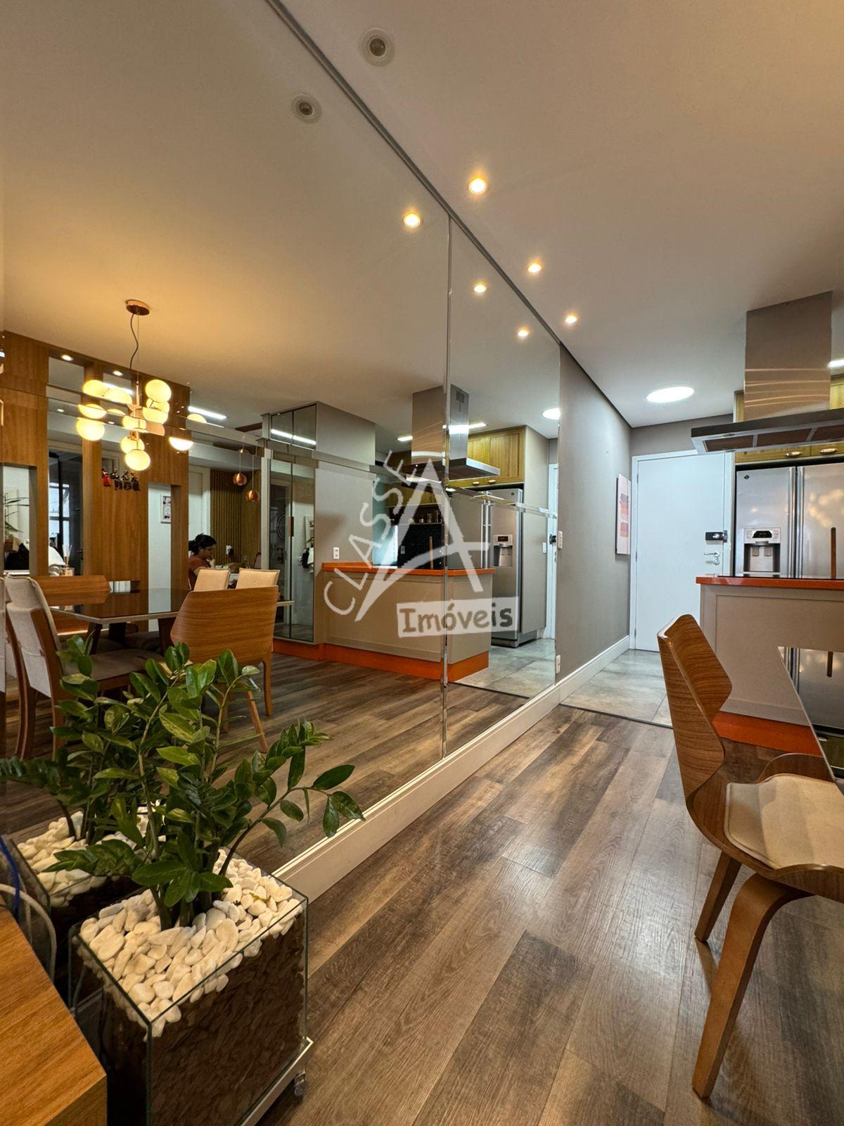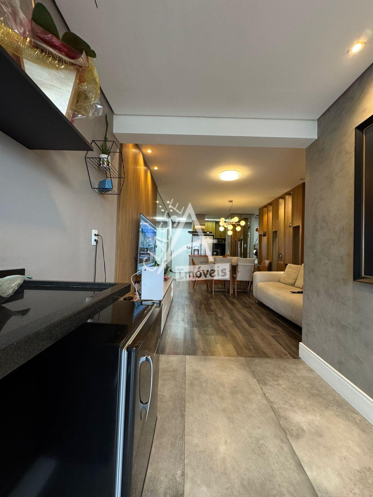 Com 83 m² de área útil, dispõe de sala ampliada para dois ambientes, finamente decorada e integrada à varanda envidraçada com churrasqueira, ideal para momentos de lazer e convivência. A cozinha americana é equipada com armários planejados de excelente qualidade, oferecendo funcionalidade e sofisticação. Na área íntima, conta com 3 dormitórios, sendo uma suíte com móveis planejados, além de dois banheiros com revestimentos de alto padrão. A área de serviço é arejada e possui acesso por painel ripado, unindo design e praticidade ao ambiente.