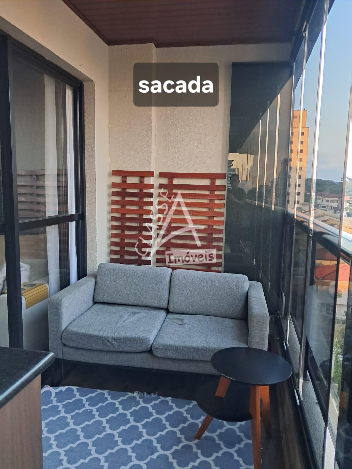 Sacada ampla, envidraçada e mobiliada